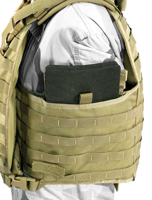 This plate carrier was designed in cooperation with elite units of the US Army. Designed with a balance of mobility and durability, this 500 Denier Cordura nylon carrier weighs less than 5 lbs unloaded. Side panels accept armor plates or additional equipment pouches. This carrier can be adjusted to carry front/rear or just front armor plates.