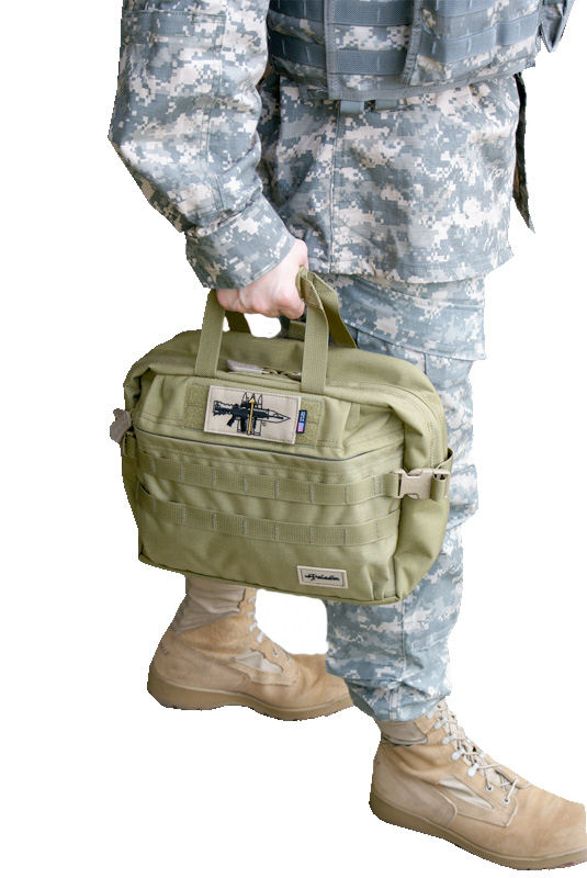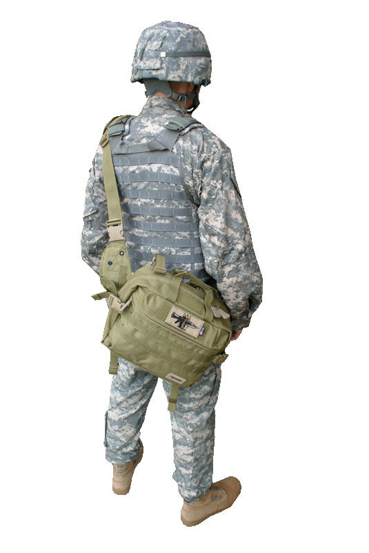 With over 10 methods of carry and deployment, the Mission Go Bag is an extremely versatile carrier of gear. From a shoulder satchel bag, to a waist pack, and to a hand-carried brief case, this pack allows you to switch modes in a few quick adjustments The Mission Go Bag can also be quickly attached to any other case, carrier, or vest which is MOLLE compatible.