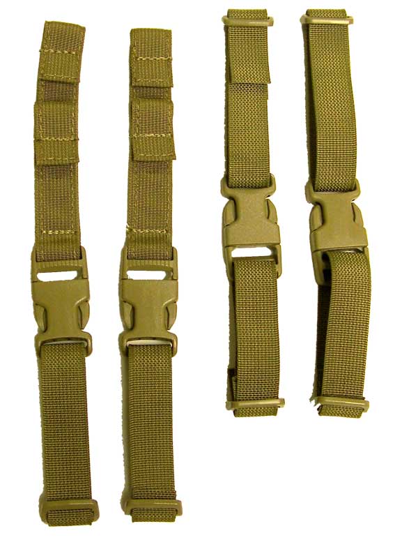 Facilitates mounting bags onto MOLLE/PALS compatible systems, including armor and bags. This set is specifically designed to mount the Mission Go Bag.