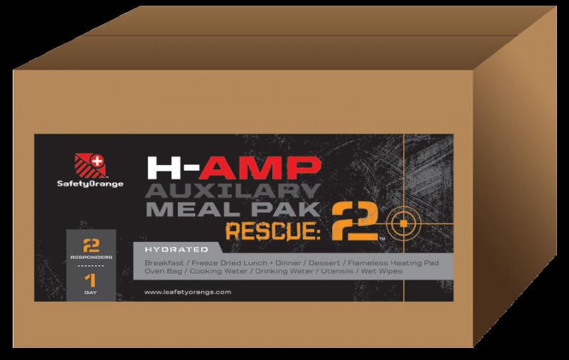 Previously only available to government agencies, the Auxiliary Meal Pak (AMP) is a fully self-contained system for providing nutrition during critical incidents. The AMP kit is designed to sustain 2 first responders for 1 full day (6 meals- breakfast, lunch, dinner). AMP includes drinking water for each meal.